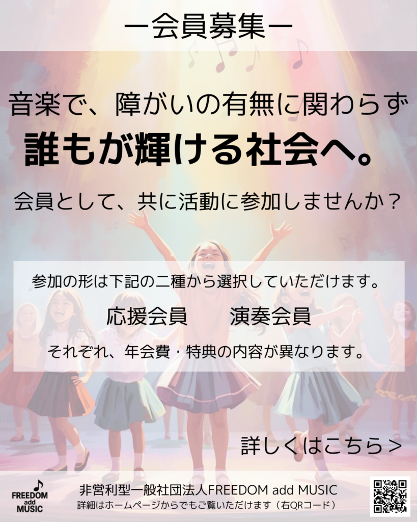 また、FREEDOM add MUSICでは、私たちとともにインクルーシブ社会を目指す取り組みに参加していただける会員を募集しております。